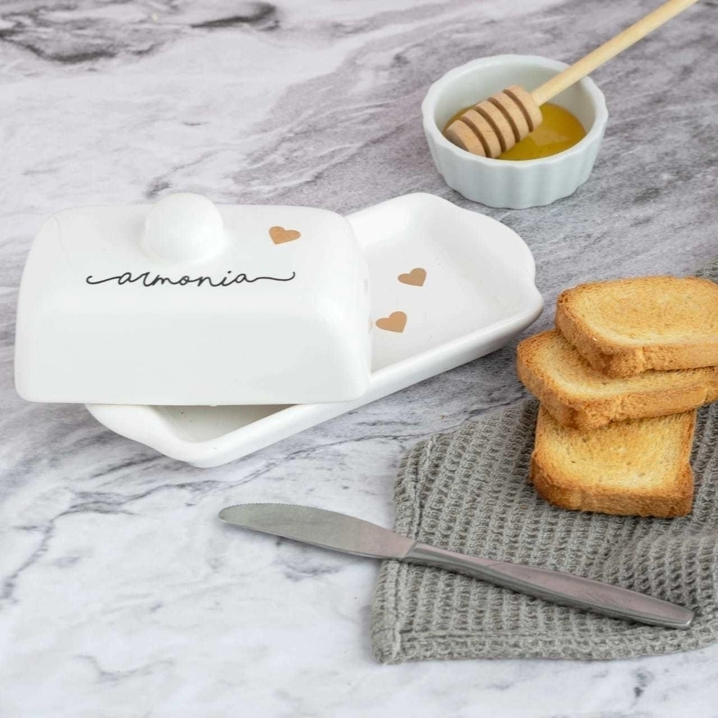 Nuestras mantequeras están estampadas y horneadas a más de 700° para que ese momento que amás, dure por siempre. 100% reciclable.
