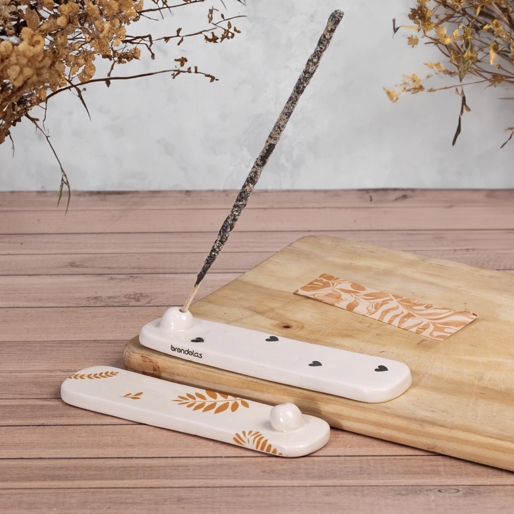 Descubre la elegancia de nuestros porta sahumerios de cerámica, estampados con diseños únicos que aportan estilo y funcionalidad a cualquier espacio. Con una medida de 18 cm de largo, son perfectos para disfrutar de tus sahumerios favoritos mientras decoran tu hogar.